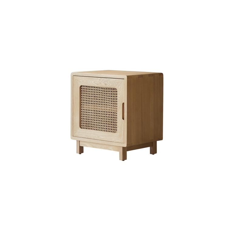 Comodino in legno di olmo massello e rattan