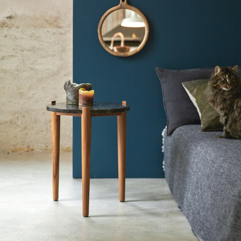 Comodino in teak e marmo black