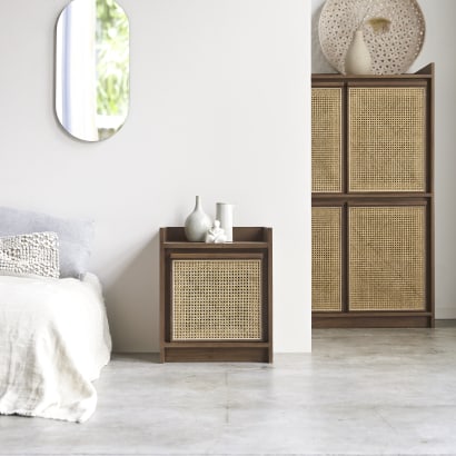 Comodino in teak massello e rattan