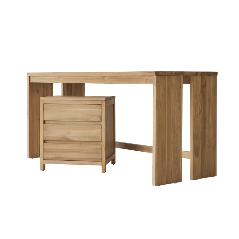 Composizione: 1 modulo a 3 cassetti con guide in metallo e 1 scrivania in teak