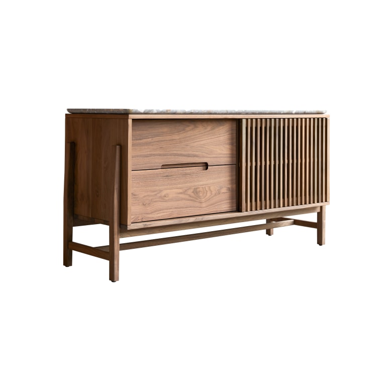 Credenza in legno di noce massello e battuto di terrazzo premium 140 cm
