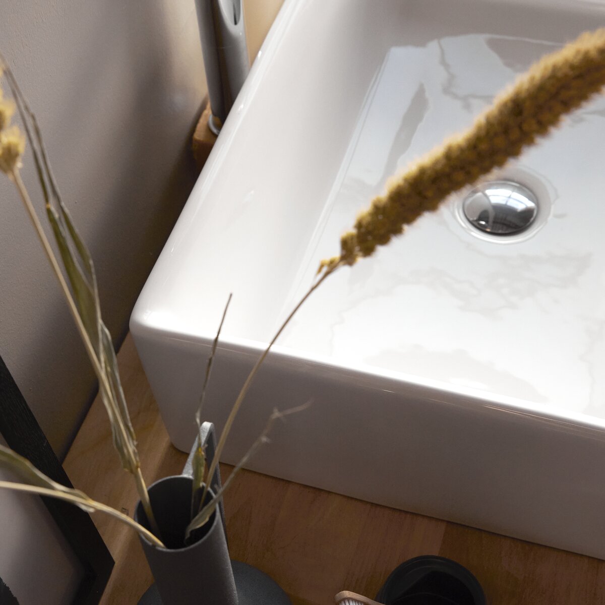 Il lavandino in ceramica è anche disponibile in versione circolare e quadrata.