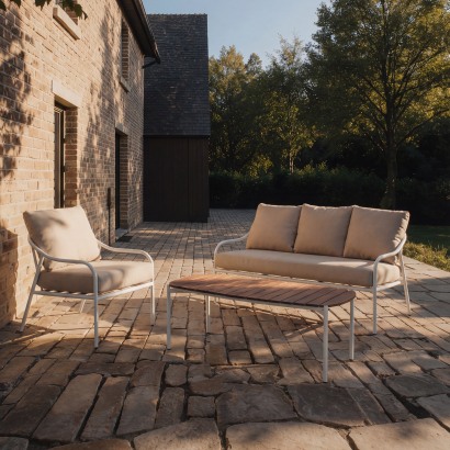 Questo set da giardino è composto da 1 tavolino basso, 1 poltrona e 1 panchina.