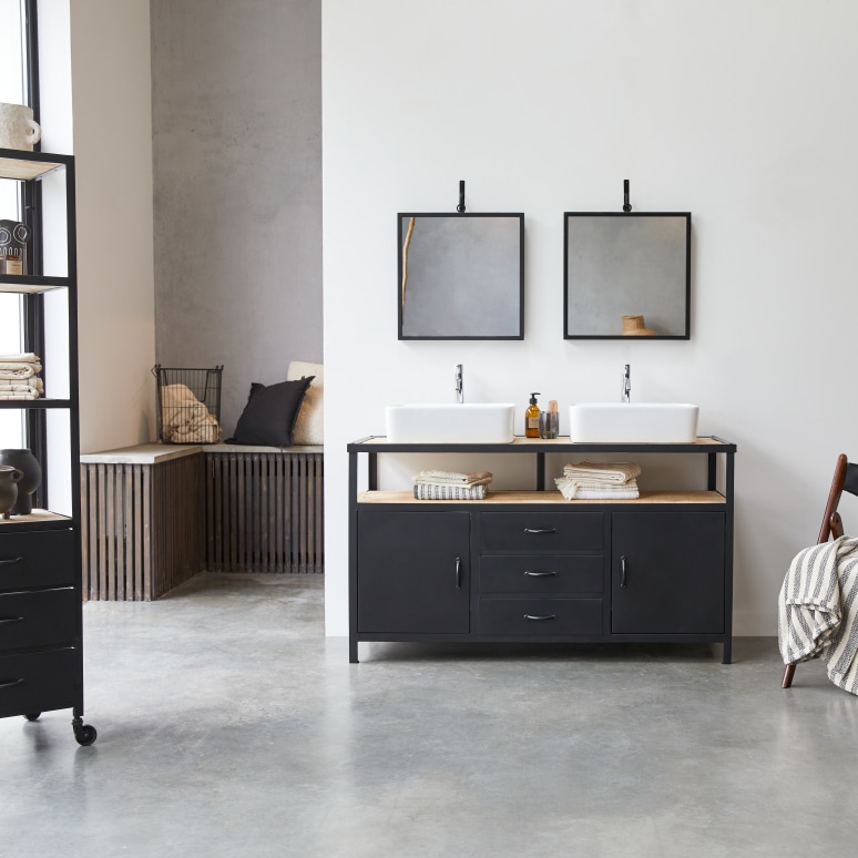 Mobile per il bagno in legno di mango massello e metallo 140 cm
