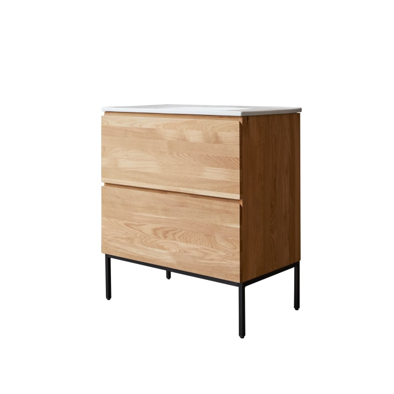 Mobile per il bagno in legno di quercia massello e ceramica 80 cm