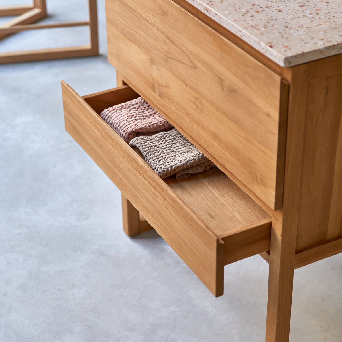 Mobile per il bagno in teak massello e terrazzo premium pink 80 cm
