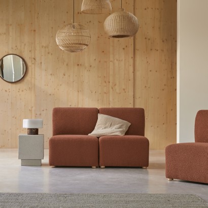 Divanetto modulare in legno massello di acacia e tessuto terracotta, 2 posti