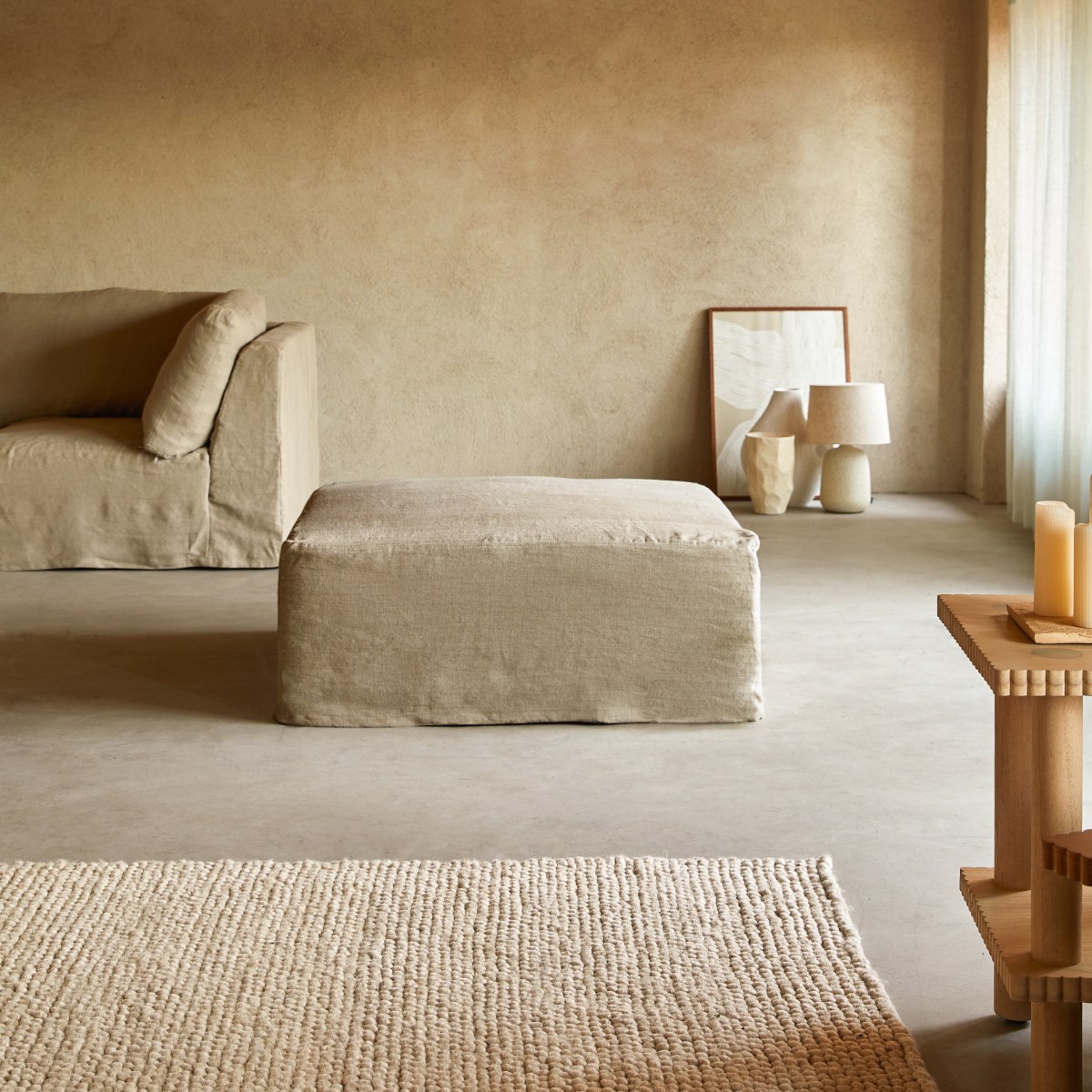 Poggiapiedi in lino naturale