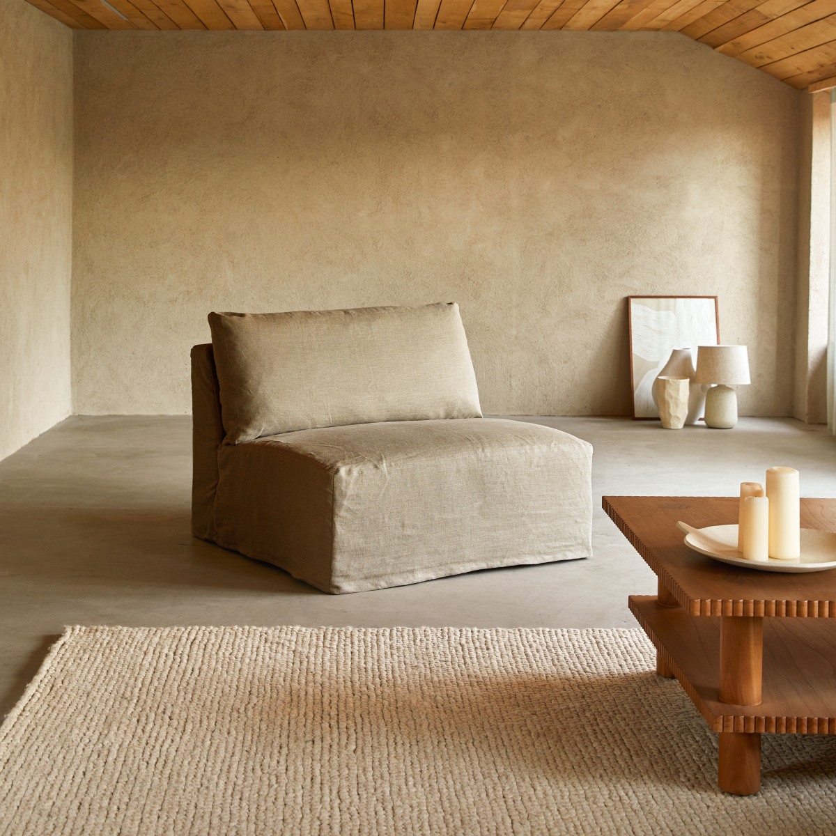 Poltrona bassa modulabile in lino naturale