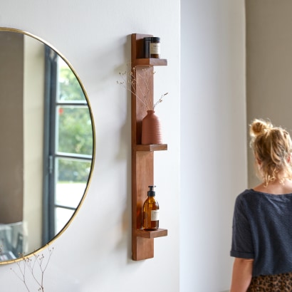 Scaffale verticale per il bagno in legno di palissandro massello