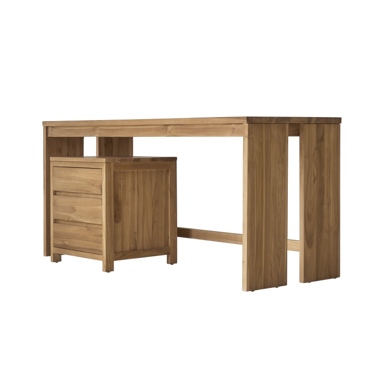 Scrivania in teak massello con cassettiera