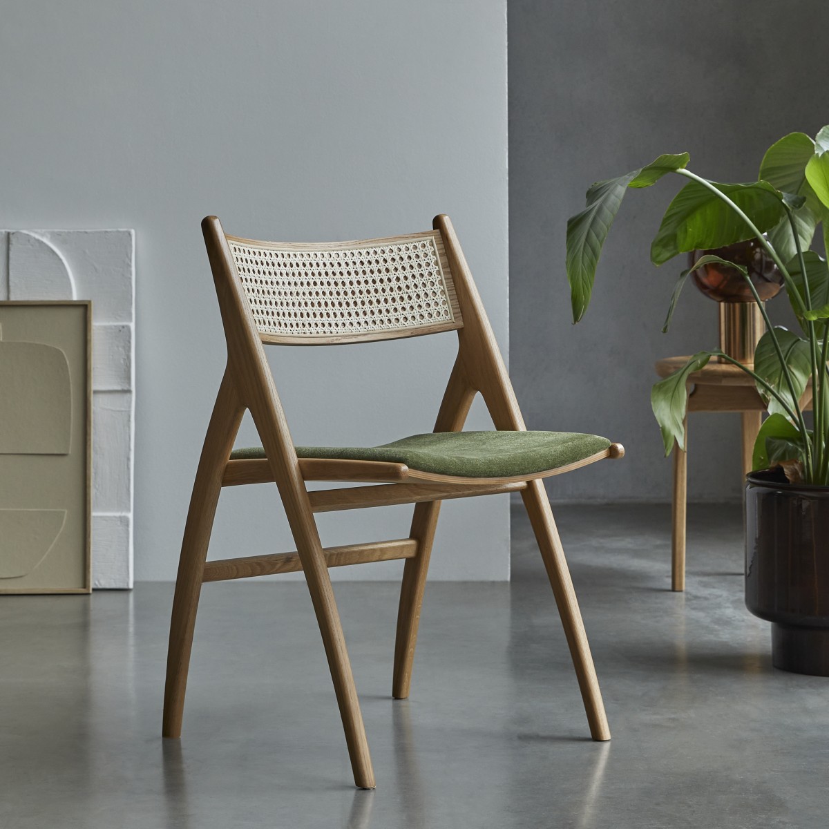 Sedia in rovere massello e velluto verde
