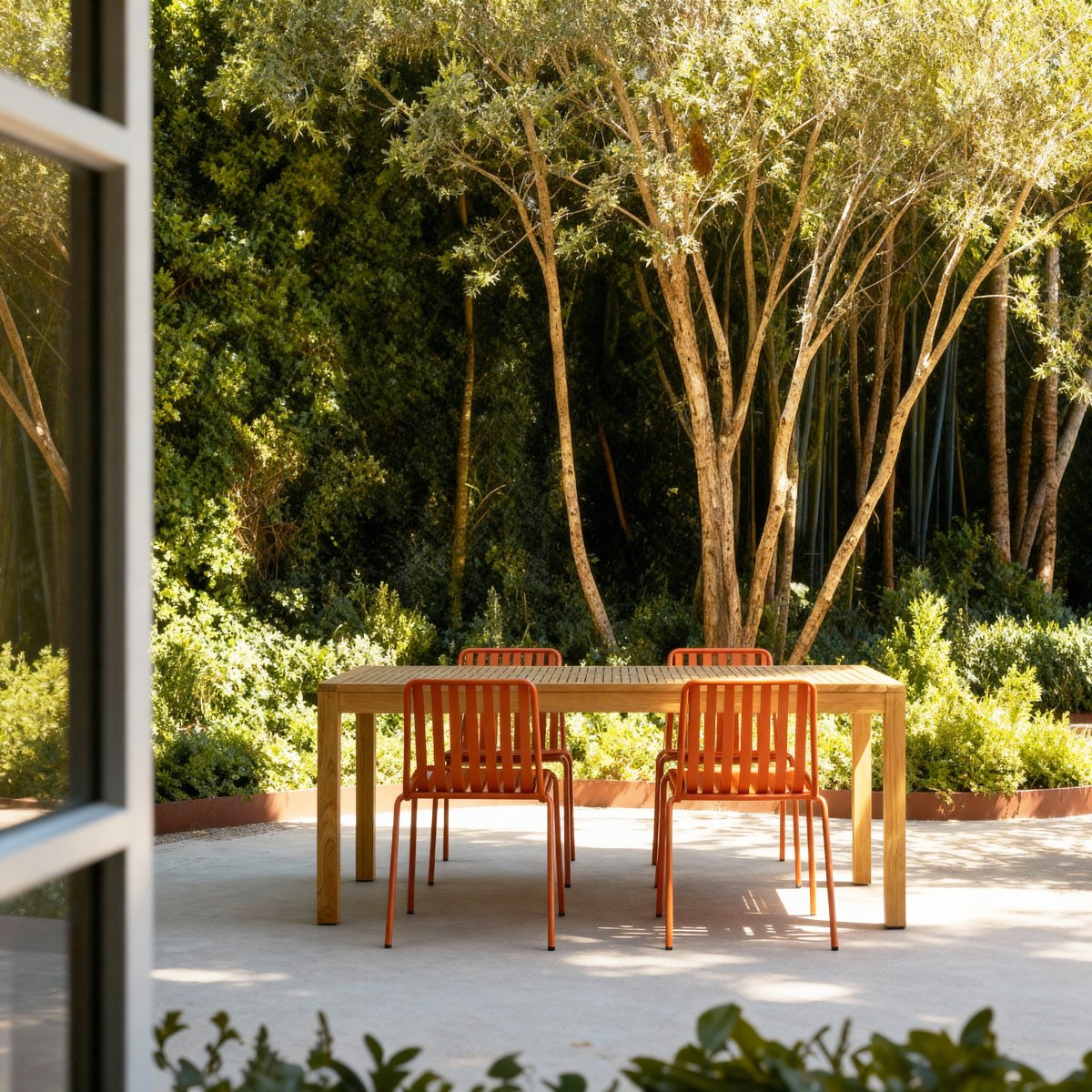 Set da giardino in teak massello e metallo arancione 4 sedie